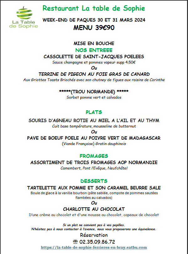 Welcome to La Table de Sophie, a culinary gem nestled in Ferrières-en-Bray, France. This charming restaurant is known for its delectable dishes and warm, inviting atmosphere. Customers rave about the excellent taste and quality of the food, featuring a diverse menu that caters to all palates.